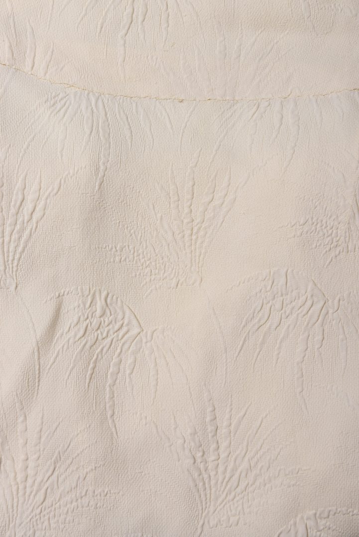 Aftonklänningens tyg i cloqué, en dubbelvävning med mönster i rynkeffekt.