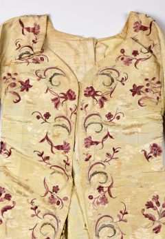 Caracons framsida med omfattande broderier i silke och silvertråd. -