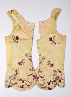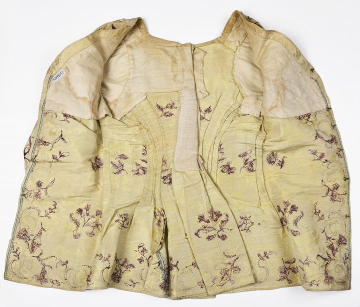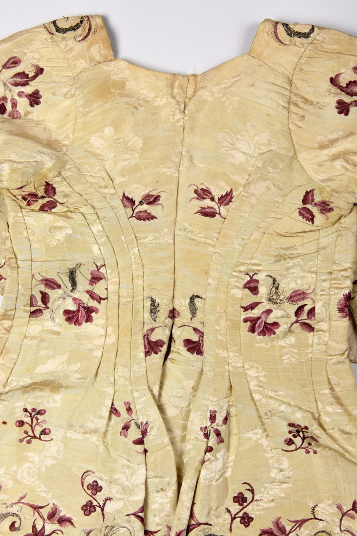 Livets bakstycke har i senare tid delats. Framstycket är sammansatt av bitar av det broderade tyget. -